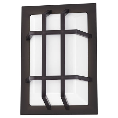 This commercial grade outdoor sconce features a trapezoidal White acrylic lens on an aluminum frame finished in Bronze. A four-position switch, located on the back, allows you to select the color temperature from 2700K to 5000K to meet a wide range of specified color temps.