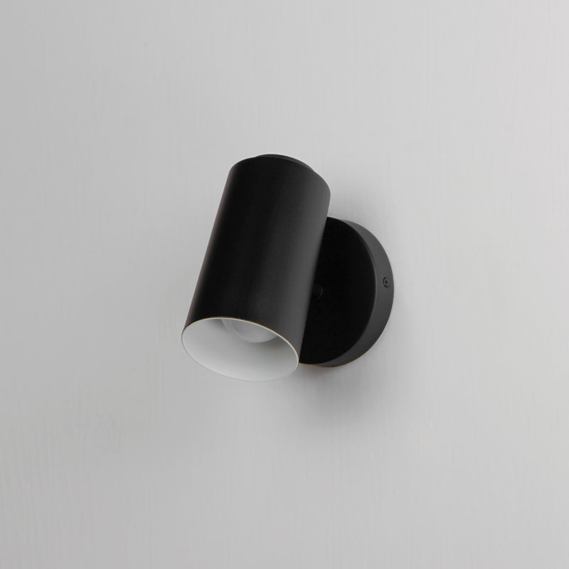 An Articulating Dome or Cylinder mono point Wall Sconce featuring sleek, streamlined design and directional shade that provides focused directed light. Available in Naturally Aged Brass and Matte Black outdoor rated powder coats and constructed of non-corrosive aluminum, this straight or dome-shaped shade is a stylish alternative to security flood lighting with interior appeal as a bedside or reading sconce.