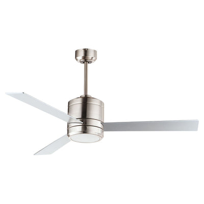 Clean and contemporary, the Tanker ceiling fan is damp rated so whether it is a covered outdoor living space or any room indoor this sleek fan suits the application. Ditch the fan rod and convert to a hugger. Several lengths of extension rods allow you to use this fan no matter the ceiling height. Available in 2 different finishes: Satin Nickel, and matte Black.