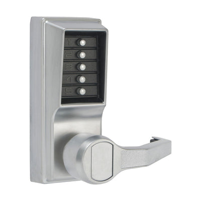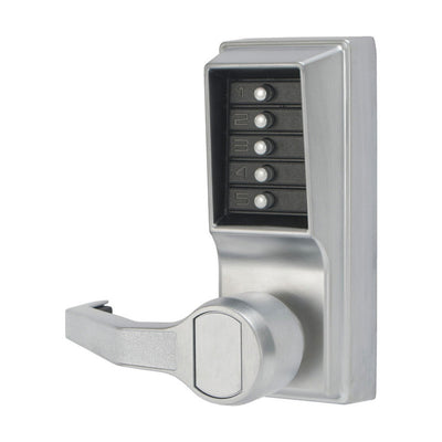 The Simplex L1000 Series provides exterior access by combination, while allowing free egress. This mechanical lock, with lever option, eliminates the material and labor expense of battery replacements, has a single access-code and is programmed via the keypad without removing the lock from the door.