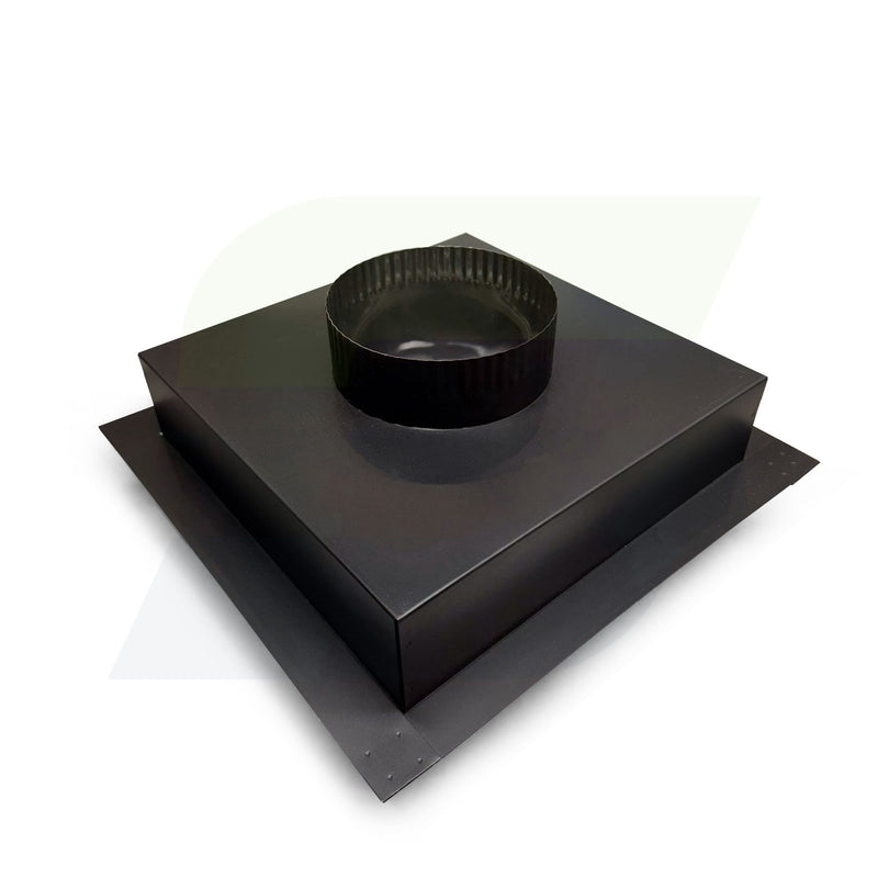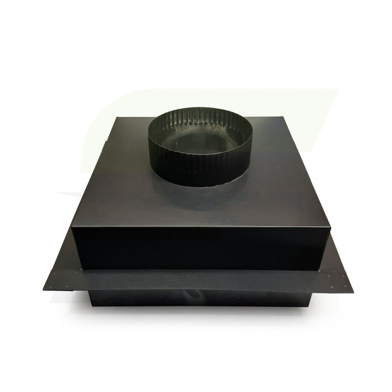 The black ceiling support is designed to support the chimney from the floor or ceiling joists