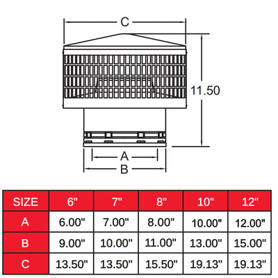 Metal-Fab 8TGC - 8" All-Fuel Triple Wall Stainless Steel Rain Cap