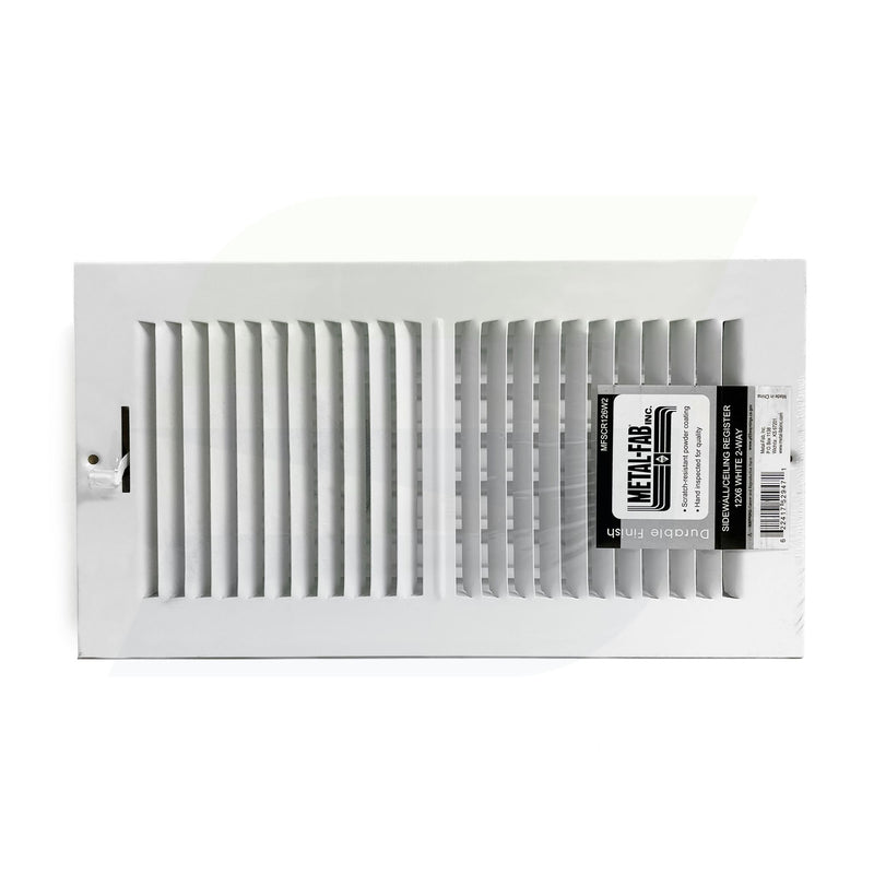 Metal Fab MFSCR126W2 - 12" x 6" 2-Way Sidewall / Ceiling Register - White