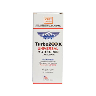 There are over 200 different dual value motor-run capacitors used in air conditioning service work, and it is almost impossible to carry all of these on a truck. With the Turbo 200 and Turbo 200X universal replacement capacitors, you'll always have the correct dual value motor-run capacitor when you need it!