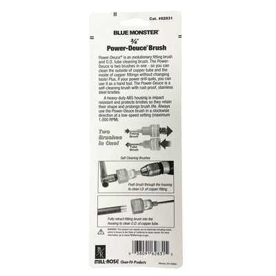 Power-Deuce is an evolutionary fitting brush and O.D. tube cleaning brush. The Power-Deuce is two brushes in one - so you can clean the outside of copper tube and the inside of copper fittings without changing tools! Plus, if your power drill quits, you can use it as a hand tool. The Power-Deuce is a self-cleaning brush with rust-proof, stainless steel bristles.
