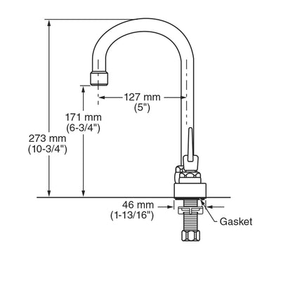 - Rigid/Swivel gooseneck spout: 5" reach, 10-3/4" overall height, 6-3/4" height to outlet