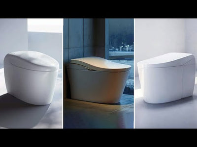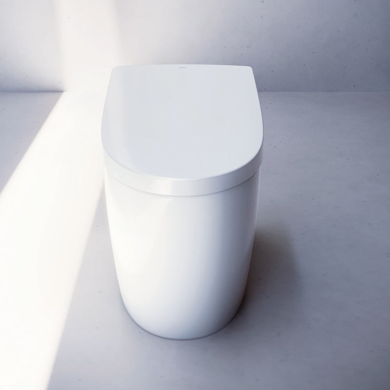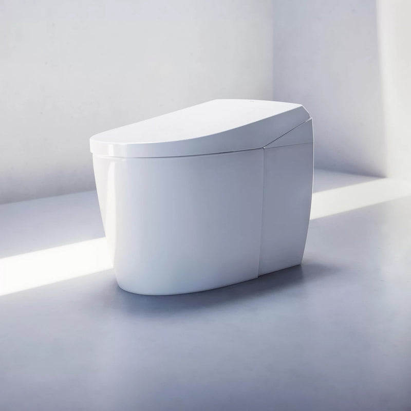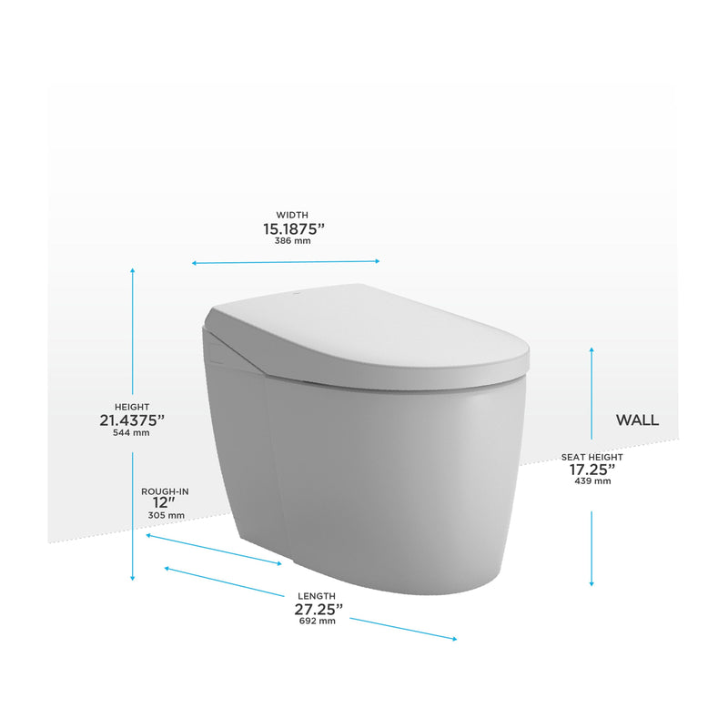 - Sleek, low profile one-piece skirted Smart Bidet Toilet with integrated personal cleansing and comfort features