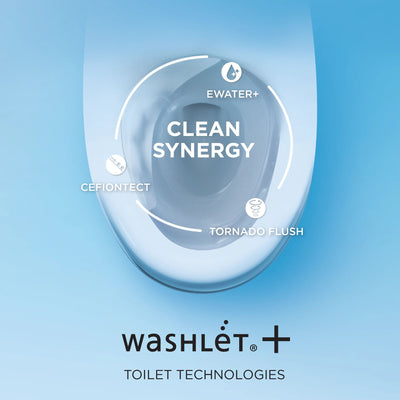 Specially designed Aimes toilet with included bidet seat WASHLET+ for a seamless installation that complements your bathroom decor