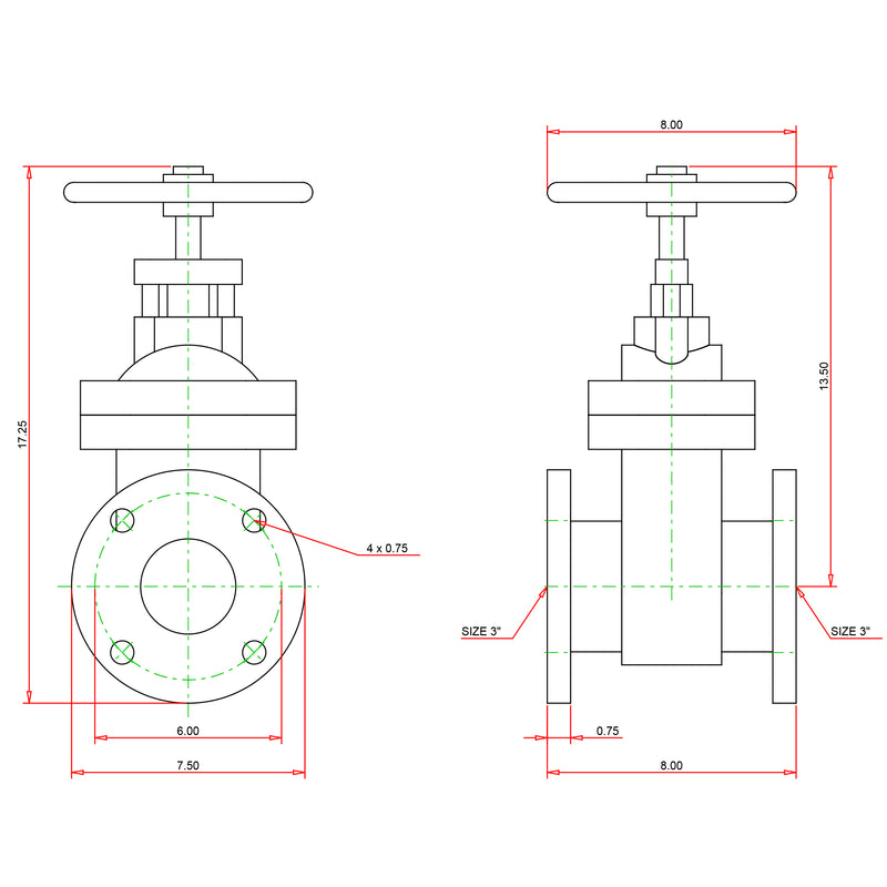 Nibco NHAC00F - Flanged Cast Iron Gate Valve - Handwheel - 3"
