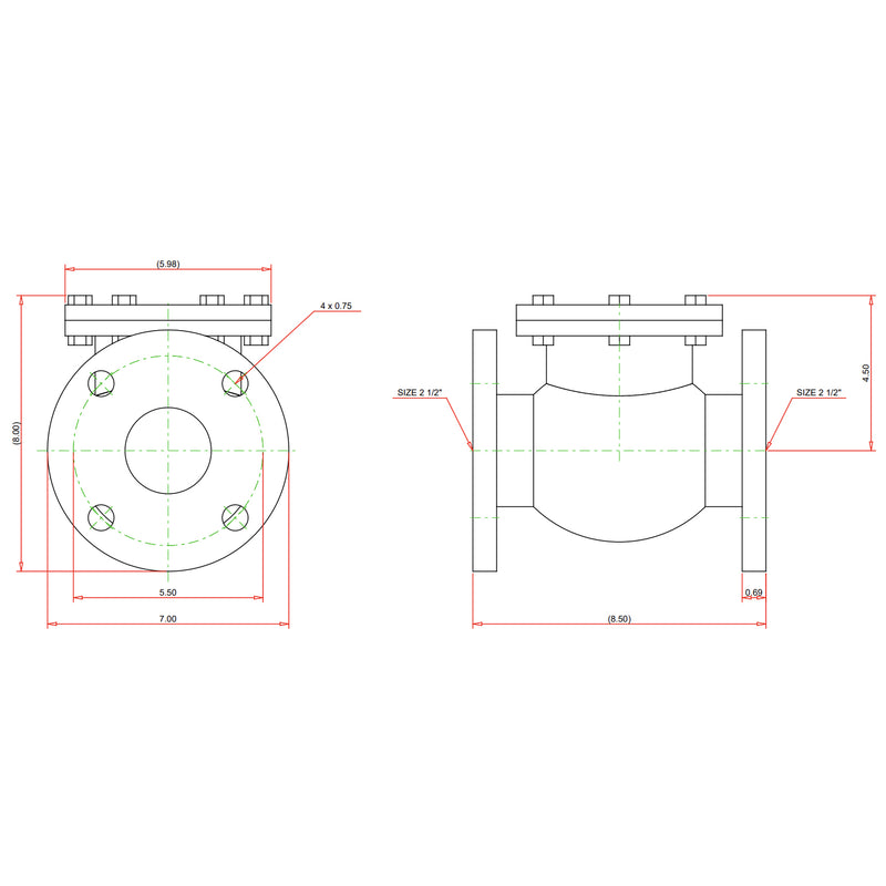 - Description: F918B 2 1/2 FLGD CHECK CAST IRON