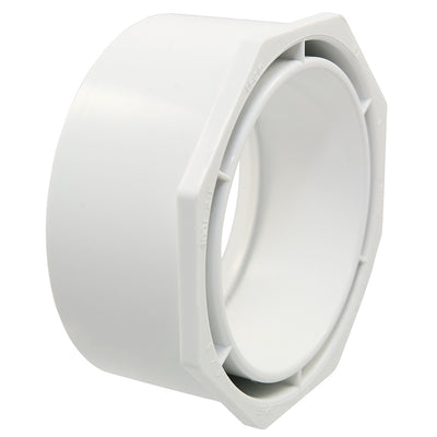 The PVC DWV flush bushing features a spigot x hub connection and provides a means for reducing the size of the line. Please refer to NIBCO technical data sheets and catalogs for engineering and installation information. Polyvinyl chloride (PVC) is the most frequently specified of all thermoplastic materials because of its light weight, durability, and cost-effectiveness. PVC DWV is easy to install and is joined by solvent cementing or threading. PVC fittings exhibit high corrosion and chemical resistance and will not rust, scale, pit or corrode. NIBCO plastic fittings are backed by a 5-year limited warranty. Because of its longstanding reputation for innovation and precision in design and manufacturing, NIBCO is the preferred brand in the industry.