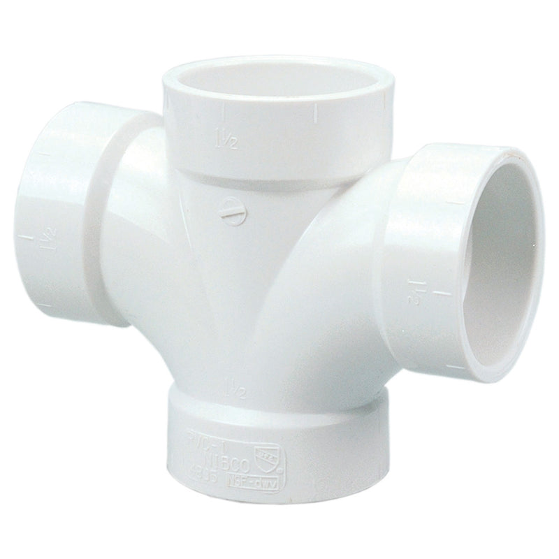 The PVC DWV double sanitary tee features all hub connections and a flowing sweep to aid in the evacuation of waste and used fluids. The tee allows for a connection to be made in continuous pipeline and branch out to a different direction. Please refer to NIBCO technical data sheets and catalogs for engineering and installation information. Polyvinyl chloride (PVC) is the most frequently specified of all thermoplastic materials because of its light weight, durability, and cost-effectiveness. PVC DWV is easy to install and is joined by solvent cementing or threading. PVC fittings exhibit high corrosion and chemical resistance and will not rust, scale, pit or corrode. NIBCO plastic fittings are backed by a 5-year limited warranty. Because of its longstanding reputation for innovation and precision in design and manufacturing, NIBCO is the preferred brand in the industry.