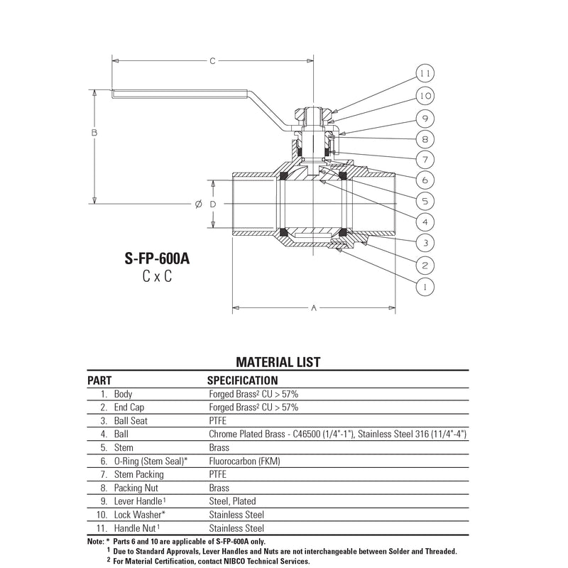 The NIBCO brass ball valve with solder end connections provides bubble-tight shutoff. The valve's PTFE seats and hard chrome-plated brass ball exhibit high chemical resistance properties. The valve is ideal for hot/cold water and gas applications.