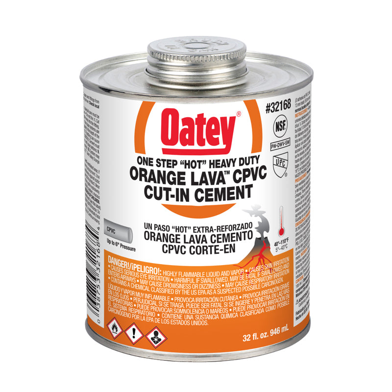 Oatey 32168 - Orange Lava CPVC Cut-In Cement - 32 oz