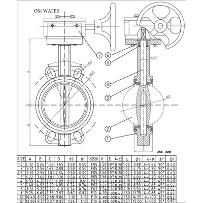 OS1-120-8CF8-GO - 12" OS Series Wafer Butterfly Valve - SS Disc - EPDM Seat - Gear