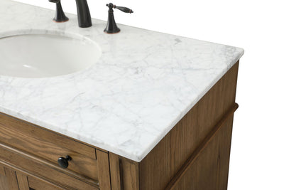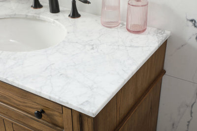 - Includes an undermount porcelain sink and a Carrara white marble countertop