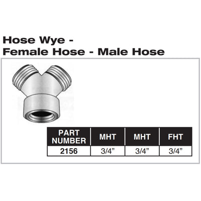 Pasco 2156 - Brass Hose to Pipe Adapter - Hose Wye - 3/4" FHT x 3/4" MHT