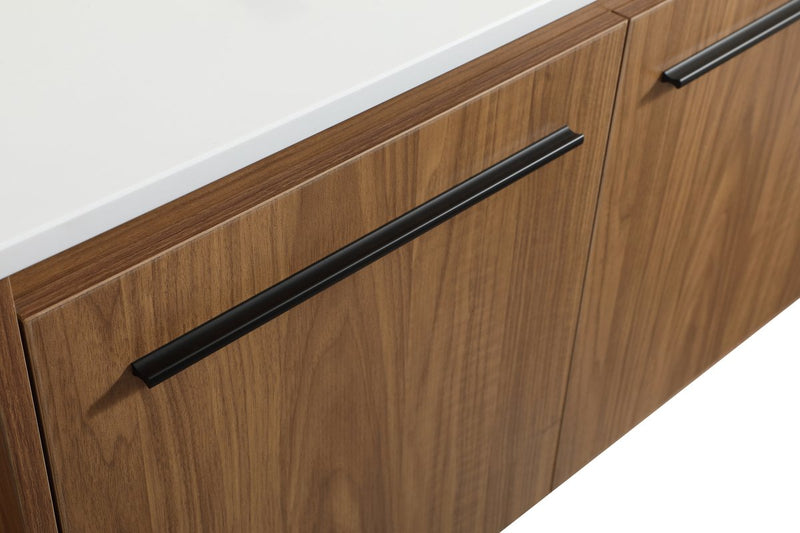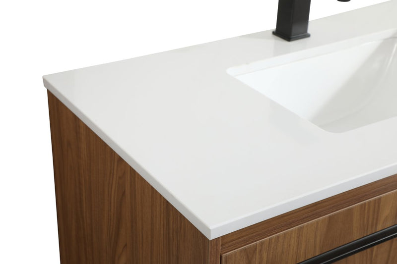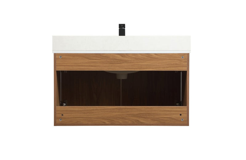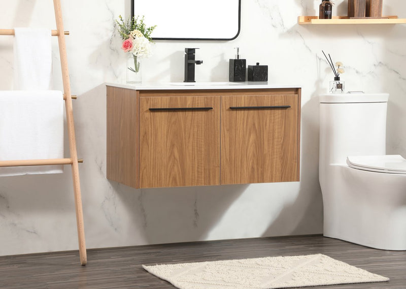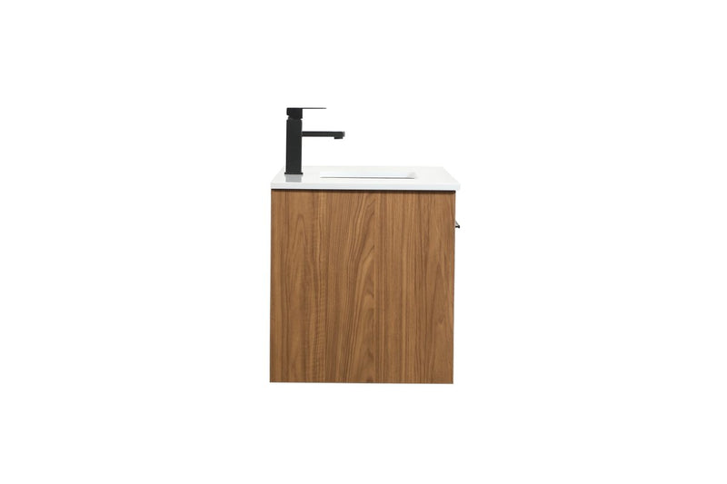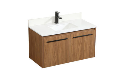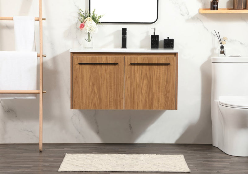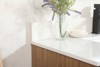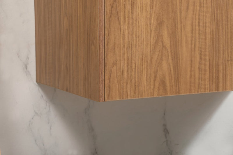 Save space and make your bathroom appear bigger with this floating vanity that comes in several finishes. Its minimal design will have you in awe, while its clean lines will leave your room feeling fresh and uncluttered. The single cabinet opens with soft closing doors that allows for storage to place extra towels or various other essentials. Its low maintenance and durable quartz top will surely last through many washes.