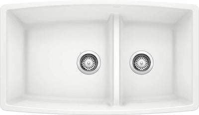 Performa Medium 1-3/4 Double Bowl Undermount Kitchen Sink with Low Divide - White