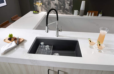 The BLANCO PRECIS SILGRANIT 30" SINGLE BOWL KITCHEN SINK is inspired by professional kitchen sinks in both form and functionality. With crisp angular shaping and simple but spacious design, this kitchen sink easily conquers the demands of everyday life. Made from the rock hard, durable SILGRANIT patented surface, it's no wonder this hardworking granite composite sink collection is one of our most popular.