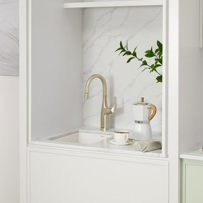 - Rear-positioned drain location for maximum usable bowl and cabinet storage