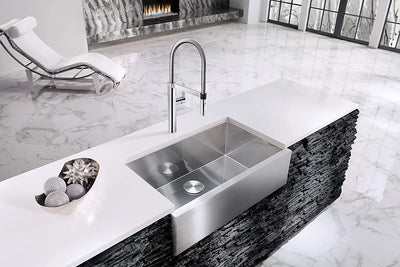 The PRECISION collection boasts remarkable structure and exceptional luster, durability, and strength, making it the ultimate statement piece in the contemporary kitchen. Crafted in Germany from a single panel of premium 18-gauge stainless steel, STEELART sinks possess a luxurious, satin polish finish and unmatched attention to detail. Combining artisanal techniques, advanced engineering and state-of-the-art technology STEELART sinks will add extraordinary style and quality to your kitchen.