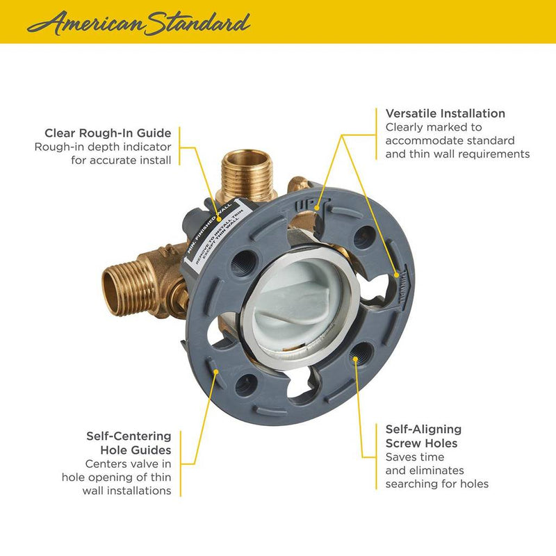 - Wide Rough-in Range: From 1-3/4" to 2-3/4" from finished wall to the back of the valve.