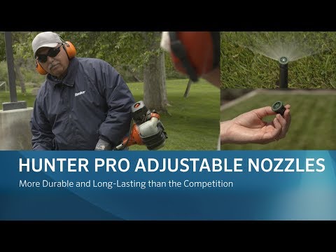 Whether dealing with hillside topography, a curved flowerbed, or other special landscape installations, challenging angles demand nozzles that adjust to their surroundings. Hunter Pro Adjustable Nozzles cover any angle needed on any landscape with the accuracy of a fixed nozzle. Engineered to emit larger than average water droplets, these nozzles are reliable, accurate, and fully adjustable to any angle from 0 to 360 degrees. Pro Adjustable Nozzles are available in seven models that cover distances from 4' to 17' using recommended pressure. For easy inventory and field ID, models are color-coded based on throw distance.