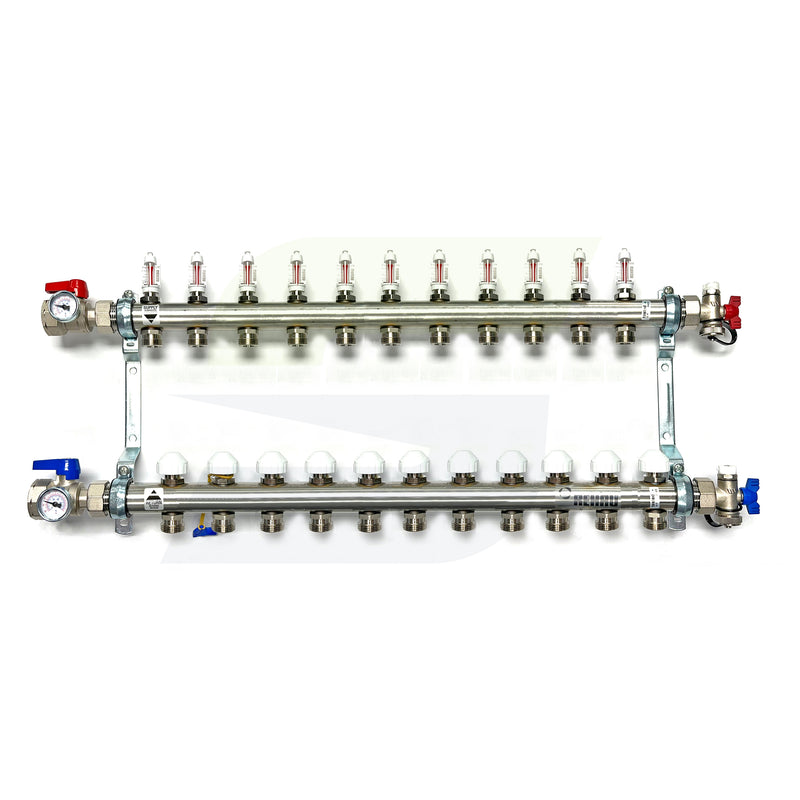 Rehau 381111-001 - PRO-BALANCE 1" Stainless Steel Manifold With Gauges - 11 Outlet