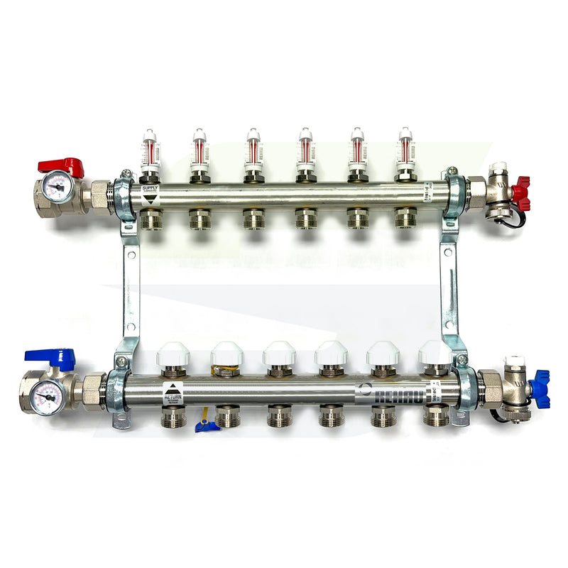 Rehau 381106-001 - PRO-BALANCE 1" Stainless Steel Manifold With Gauges - 6 Outlet
