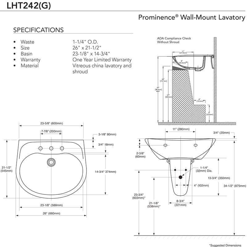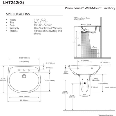 - Vitreous china wall-mount and lavatory combination complete with mounting hardware