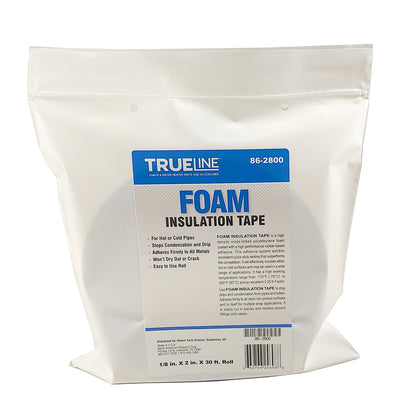 The TrueLine Foam Insulation Tape will effectively insulate hot or cold metals for use in a wide range of applications. Use Foam Insulation Tape to stop drips and condensation from metal pipes and tubes. The Foam Insulation Tape adheres firmly to all metals and won’t dry out or crack.