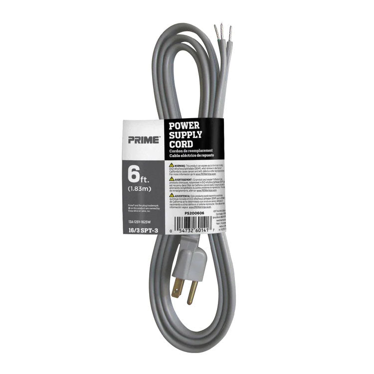 Prime PS200606 - Power Supply Cord with Straight Plug - Gray- 6 Ft