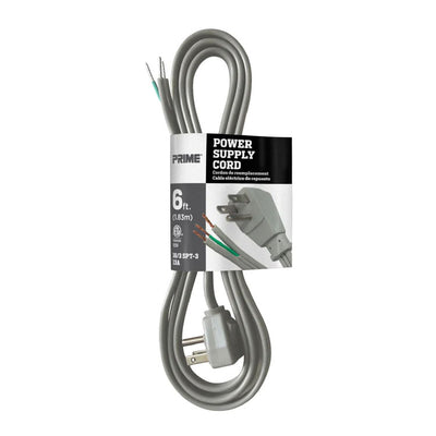 Prime Power Supply Cords feature a 1/2-inch insulation strip with twisted and tinned tip ends for ease of installation. For electrical appliances, electrical motors or anywhere flat parallel cords may be used. Molded-on solid vinyl plug won't pull apart from the cord.