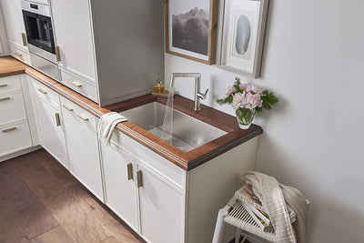 Right angle, right accessories, right shape. Guided by our German heritage and attention to detail, the QUATRUS R0 sink takes high design to the next level. Crafted with crisp zero radius corners, 18-gauge steel, and elegant optional accessories, you'll find all the right elements right before your eyes. With a lustrous, enduring finish the QUATRUS R0 SUPER SINGLE STAINLESS STEEL KITCHEN SINK is as attractive as it is practical. Offering clean lines and a sleek modern style, this collection works to complement even the most sophisticated kitchen designs. From cocktail parties to quiet dinners for two, prepping for the perfect evening has never been easier.