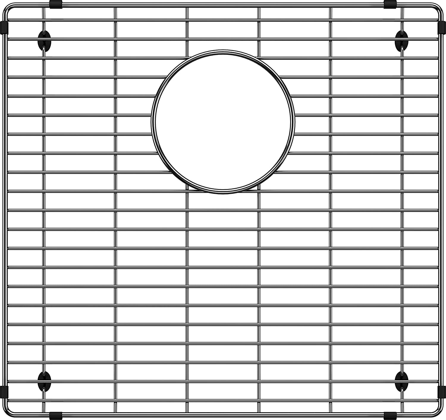 BLANCO's stainless steel grids are custom designed to protect the finish of your kitchen sink from dishes and utensils. Made to complement the unique shape of your BLANCO sink, the stainless steel sink protector is made to measure, so it’s always the perfect fit. The simple metal kitchen sink grid sits on the bottom of your sink on non-skid protective feet to prevent damage, allowing water to drain below the dishes. The stainless steel grate’s sides are also finished with protective bumpers. Keeping your kitchen sink’s finish looking flawless, the sink drain rack is also ideal for rinsing stacked plates or preparing vegetables, and also provides a convenient in-sink drying rack for glassware, utensils and plates.