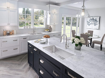 You asked for it, we delivered. Discover the definition of beautiful, Contemporary style. Everything in your home speaks to your modern style. And your sink should be no exception. But aspiring for high design doesn't have to equal lots of extra work. Our versatile Quatrus R15 32" STAINLESS STEEL KITCHEN SINK is crafted with softer radius corners, maintaining its beauty, yet adding an element of effortlessness. Its generous corners for an easier-to-clean surface so that you can spend more time enjoying and less time cleaning. With premium 18-gauge stainless steel plus custom accessories like colanders, grids and cutting boards, QUATRUS feels as much at home during its close-up prepping dinner for guests as it does being admired longingly from across the room. With the designer appeal, exceptional engineering and high-end features, the QUATRUS R15 reflect all of the things you love about modern.