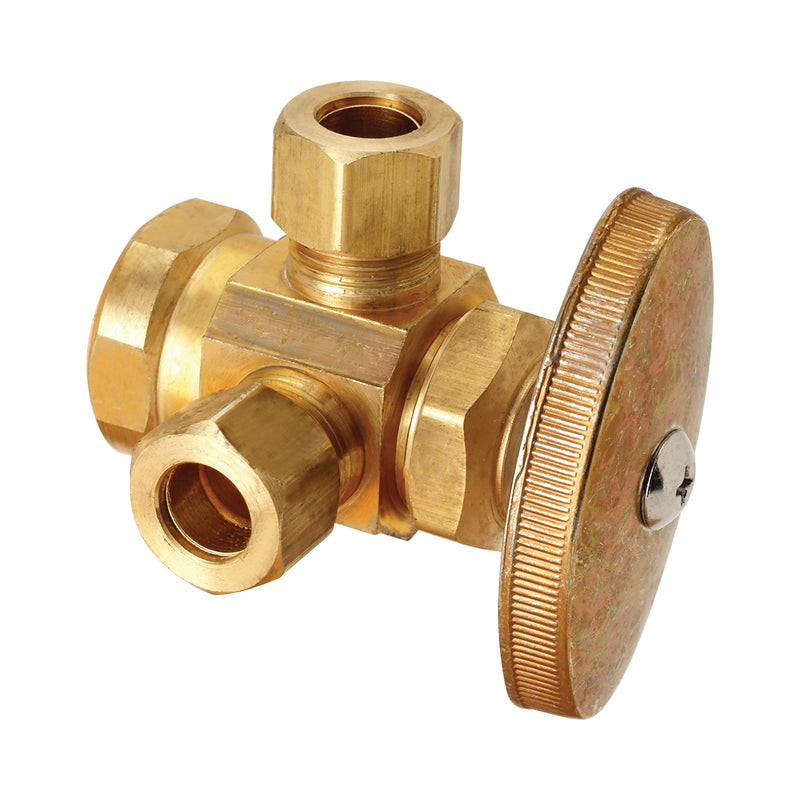 BrassCraft 1/2 in. FIP Inlet x 3/8 in. OD Compression x 3/8 in. OD Compression Dual Outlet Multi-Turn Valve controls water flow to household plumbing fixtures. The dual outlet allows two independent supply lines to be attached to a single valve. Ideal for adding dishwashers, ice makers, water filters and instant hot water dispensers to existing water supply. With a few turns of the valve handle, you are able to stop the flow of water leading to the plumbing fixture, allowing for maintenance and repair without shutting off the water to the entire home.