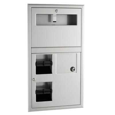 Bobrick 35745 - Recessed Seat-Cover Dispenser, Sanitary Napkin Disposal and Toilet Tissue Dispenser in Satin Stainless Steel