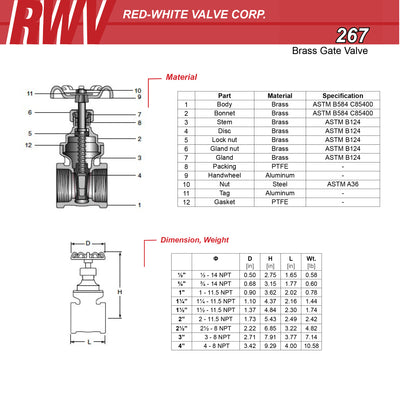 Red-White Valve 267 - Cast Brass Gate Valve, FNPT x FNPT, 2-1/2"