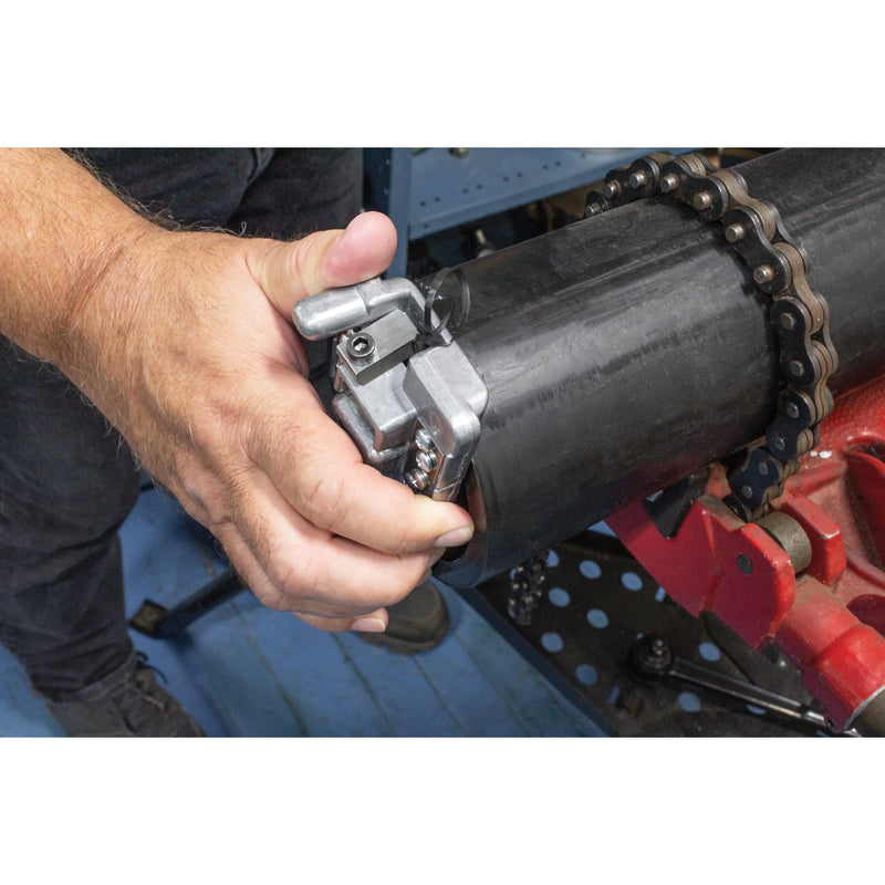 - Snap onto plastic pipe and rotate to cut an external chamfer.