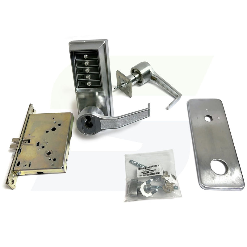 Kaba Simplex RR8146S26D Right Hand Reverse Mechanical Pushbutton Lever Mortise Combination Entry Passage Lockout with Key Override Schlage Prep Satin Chrome Finish