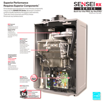 RX199iN - 199,000 BTU Super High Efficiency Condensing Indoor / Outdoor Tankless Water Heater - NG or LP