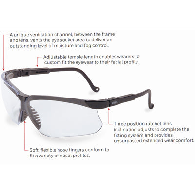 S3200 - Uvex Genesis Safety Glasses - Black / Clear
