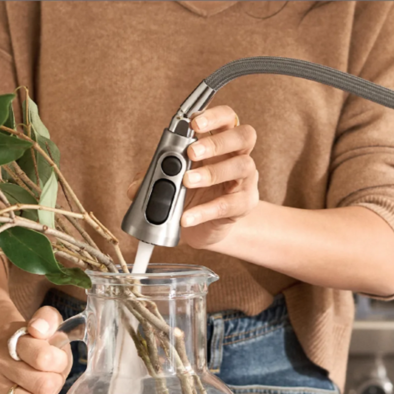 - faucet pulldown hose offers flexible water delivery and hose retracts with ease
