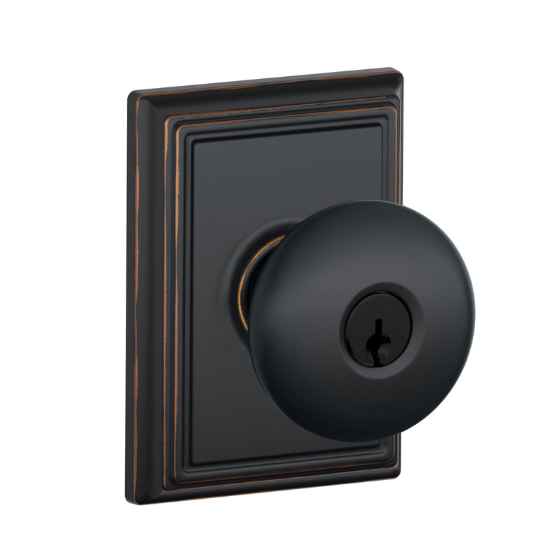 Schlage Residential F51APLY716ADD Plymouth Knob with Addison Rose Keyed Entry Lock C Keyway with 16211 Latch and 10063 Strike Aged Bronze Finish
