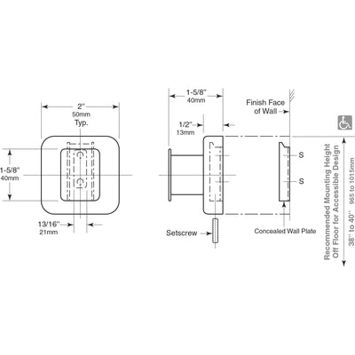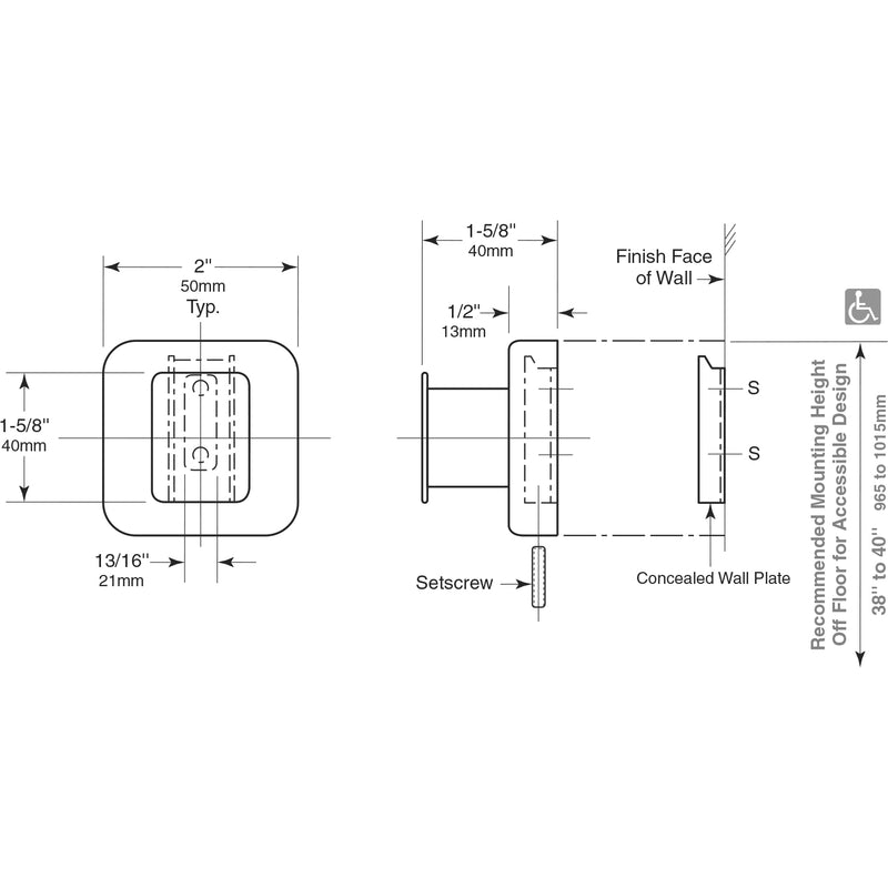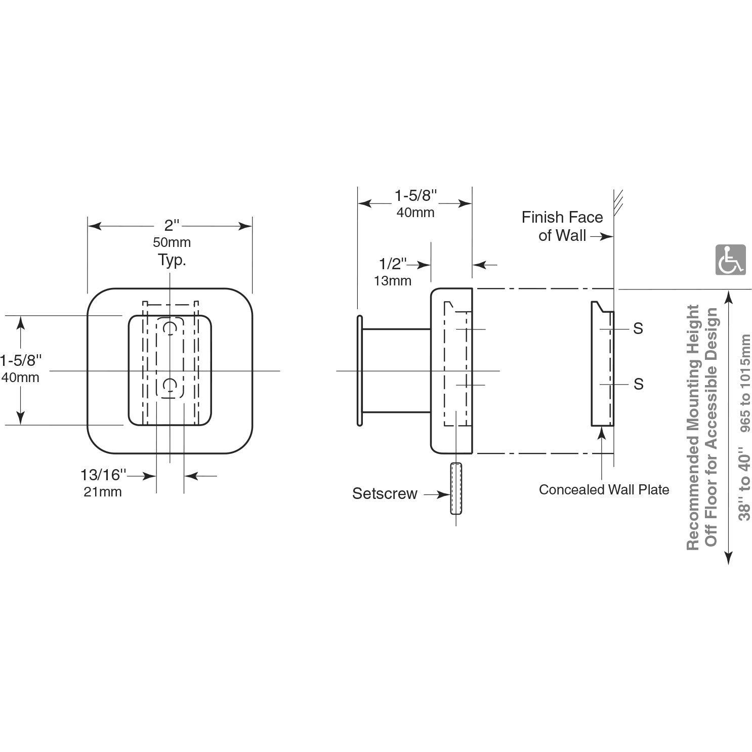 - Hook is 1 5/8" high, 13/16" wide (40 x 20mm).