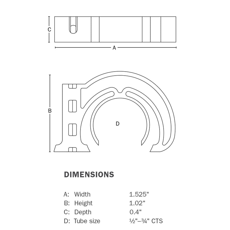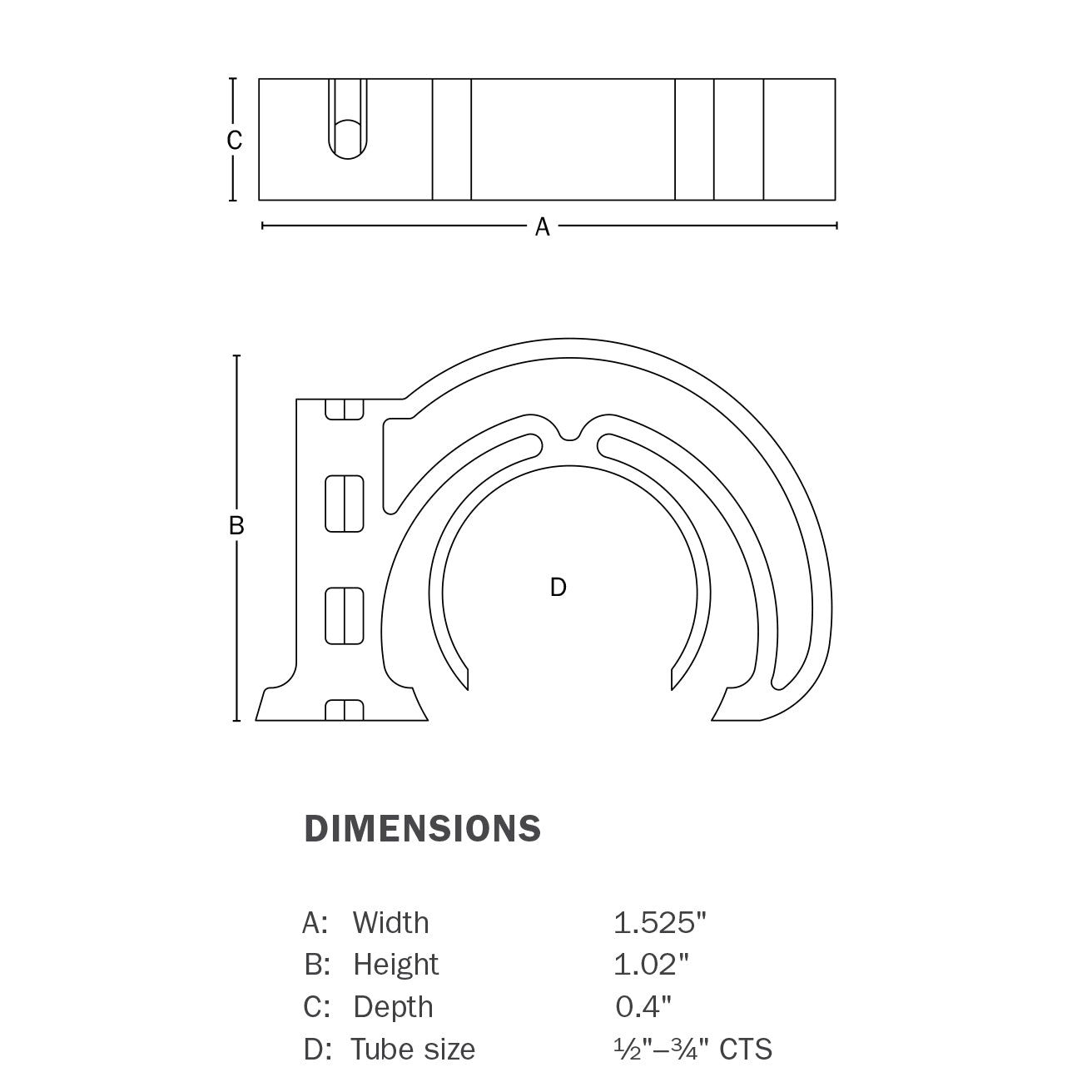- Installation: Snap onto 1/2" or 3/4" CTS tube. Be sure to follow spacing requirements of national and local plumbing codes.