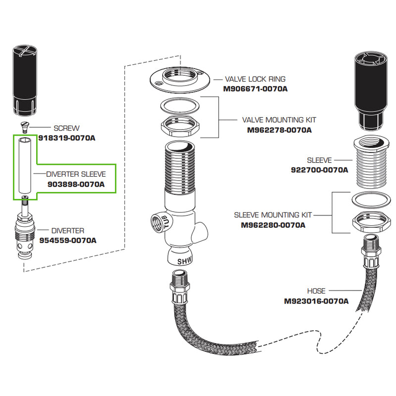 - For use with American Standard diverter and personal shower R890 valve