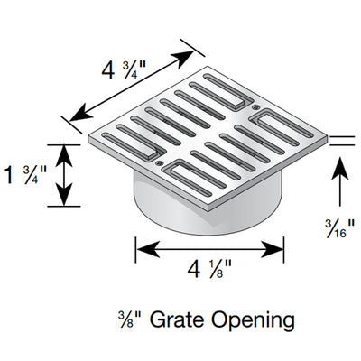 5" Square Solid Brass Grate with brass screws and PVC collar. Open surface area 2.5 square inches.